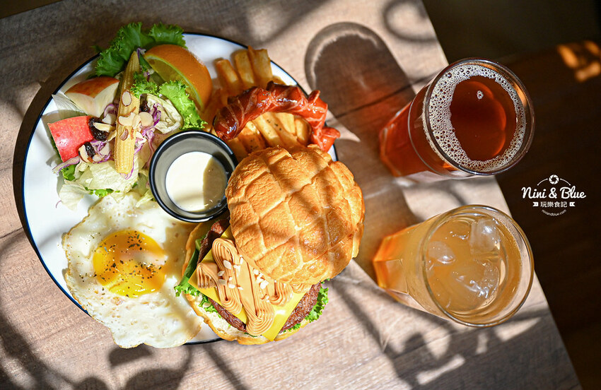 菠蘿堡是搞岡的招牌料理,用菠蘿麵包當漢堡皮,烤過之後熱熱的香氣更濃,外皮格紋更酥,但是建議你要整個和其他食材一起咬,口感才是最佳的,不要一層一層分開吃喔~