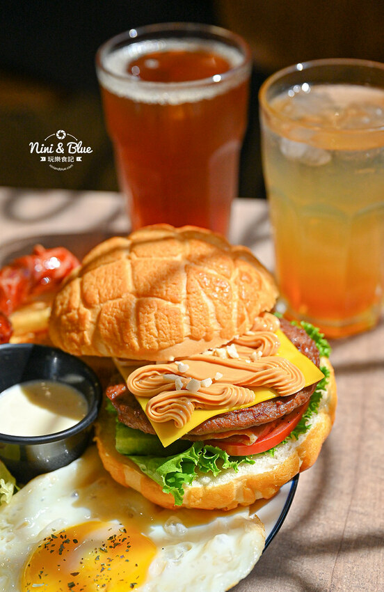 裡面的肉可以選擇豬肉或是牛肉,搭配起司片、培根、番茄片、生菜,一定要一口咬下全部才能感受到各種食材的層次感與美味。