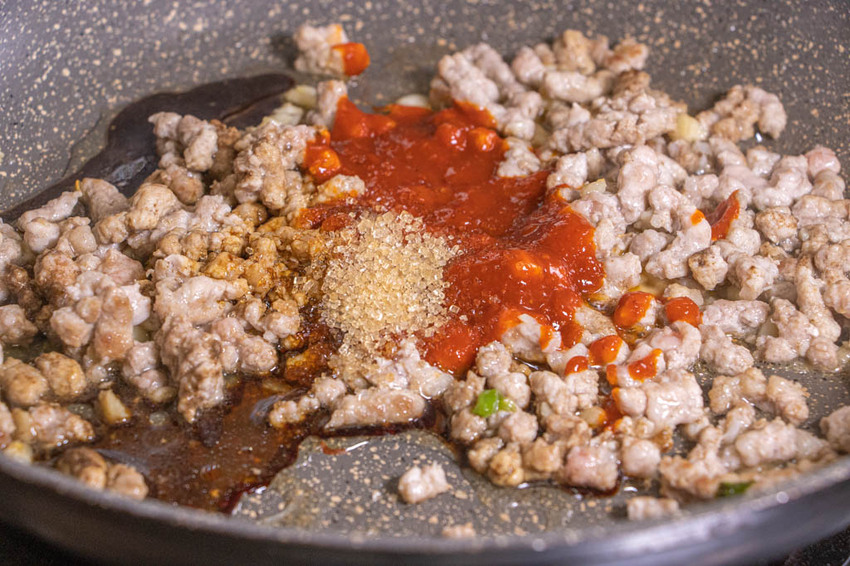 除了簡單的氣炸和水煮方式,我們有時候也會煮麻婆口味來搭水餃,微甜帶辣的感覺很是過癮,重點是煮法與備料也很簡單。