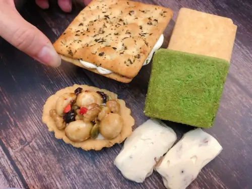 每片都能看到用料扎實的海苔和杏仁粒,宛如餅乾的卡滋卡滋的口感,鹹香帶些微微甜味,涮嘴度堪稱難波萬