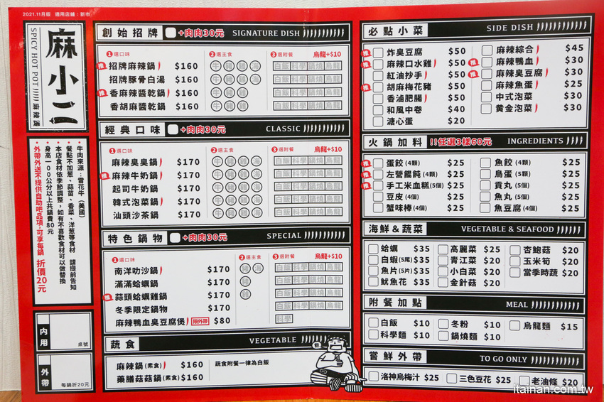 「麻小二麻辣燙 乾鍋 湯鍋料理」菜單|Menu|價格