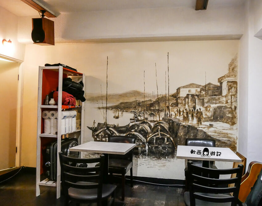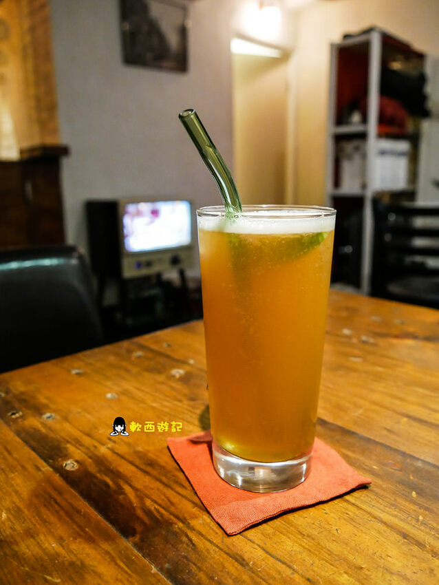 古一小舍是間迷你一眼就能望盡的小店,店內放著復古方形電視,吧檯佇著一台老式電話機,後方錯落著玻璃杯、各種廚房用品。老闆酷酷地在吧檯後方忙著活兒,音樂緩緩流洩,自四面八方圍繞來用餐的旅人們,吊燈和桌上鎢絲燈看似昏黃光芒的來源,小小一間店復古懷舊,極簡文青。我們五個人就佔了大部分座位,喧鬧笑聲突暫停後,店內又落回一片寧靜。