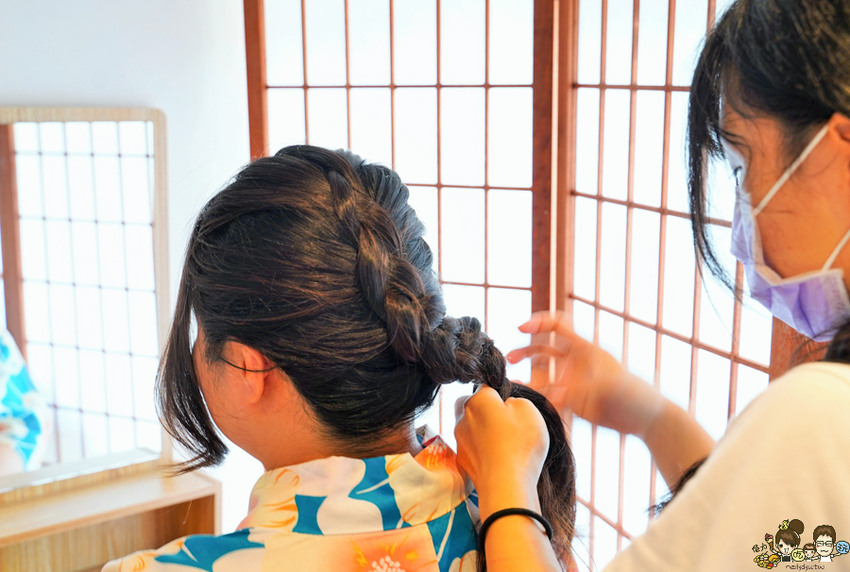 租借浴衣還免費贈送編髮,物超所值~可以穿著4小時,盡情地拍照、暢遊屏東勝利星村、來場日本京都之旅