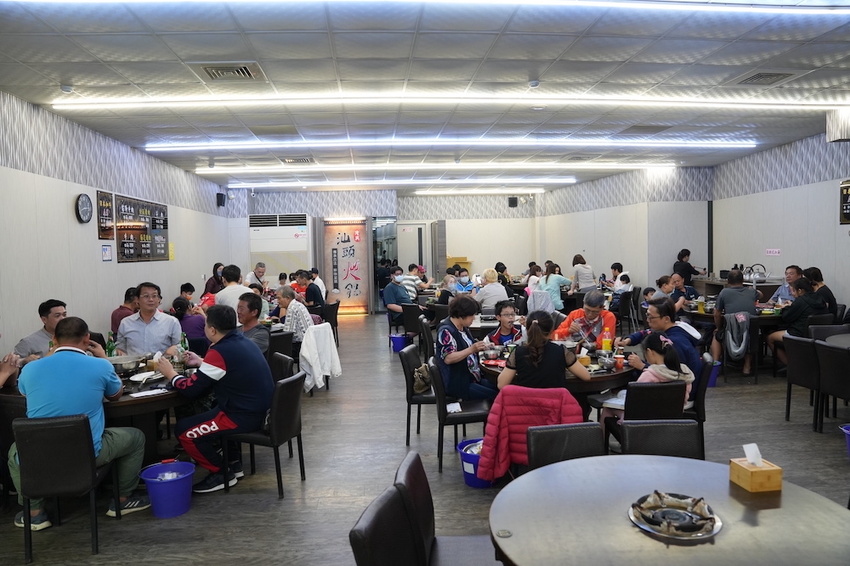 隆興汕頭火鍋 座位區明亮寬敞,入口可見廚房乾淨