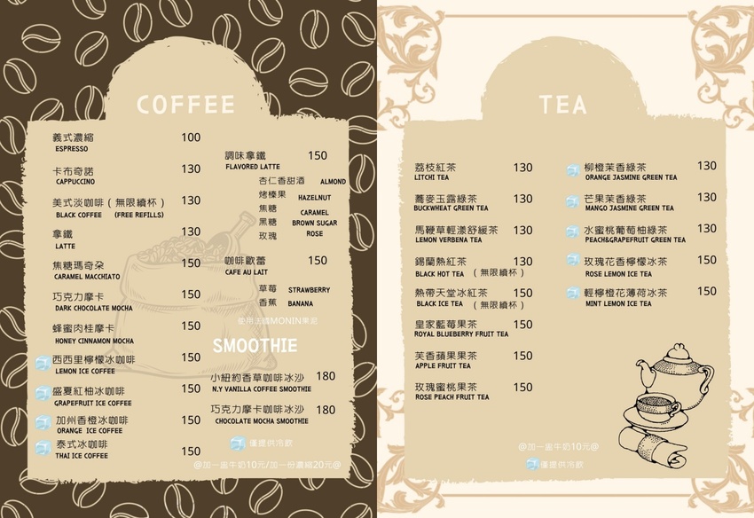 手標泰式茉香綠奶茶$150元,乍看還真不小心會以為是抹茶奶綠之類的飲品,沒想到竟然是泰式風味的飲品,不但有著圓潤的茉莉香氣,奶香更是特別,像是奶粉或是雪糕的香醇風味,結合在一起意外地蠻搭的。