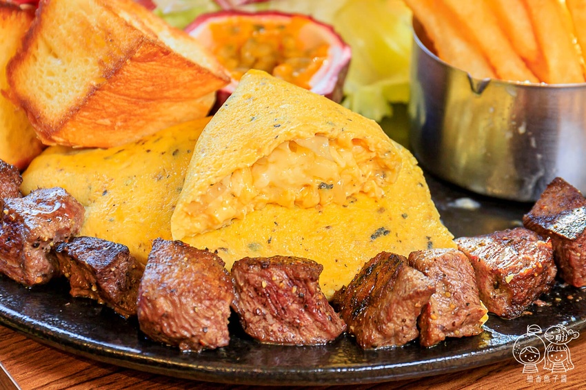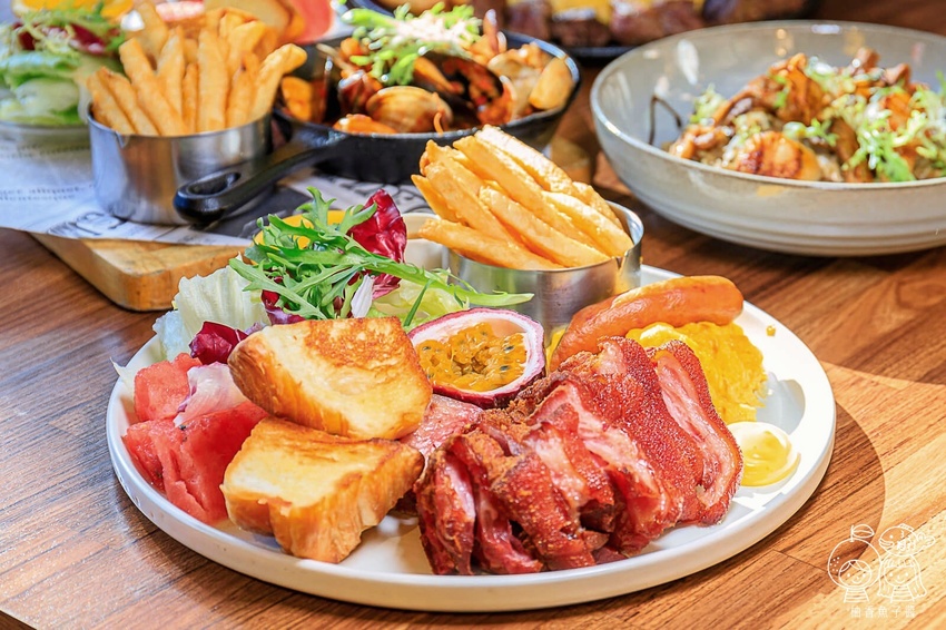 其實光是吃完整份裡頭的麵包就挺有飽足感了,外表烤得微焦,內裡澎鬆香軟,還有細緻的奶油香氣,格外耐吃。同時還有油醋風味的沙拉、香甜多汁的西瓜與酸甜百香果,吃飽也能順便解解膩。