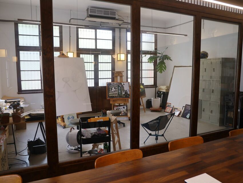 玉虫画室本來就是間畫室,以透明的落地窗來展現畫室的樣貌,也讓咖啡與畫室的融合更加地密切。