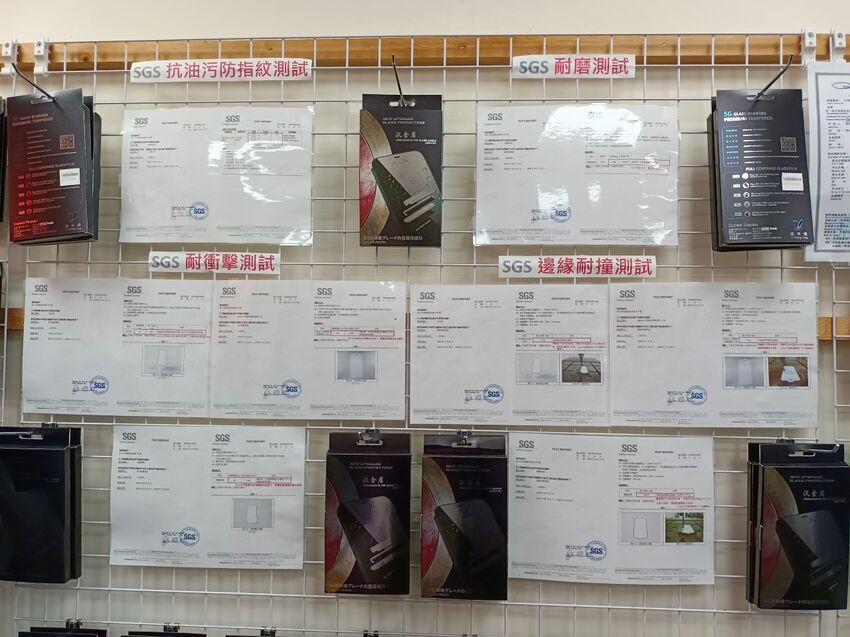 汎金盾 5G軍規級螢幕保護貼擁有多項SGS認證~用說的沒看頭啦!直接把證明掛上店內牆上讓客人直接來看