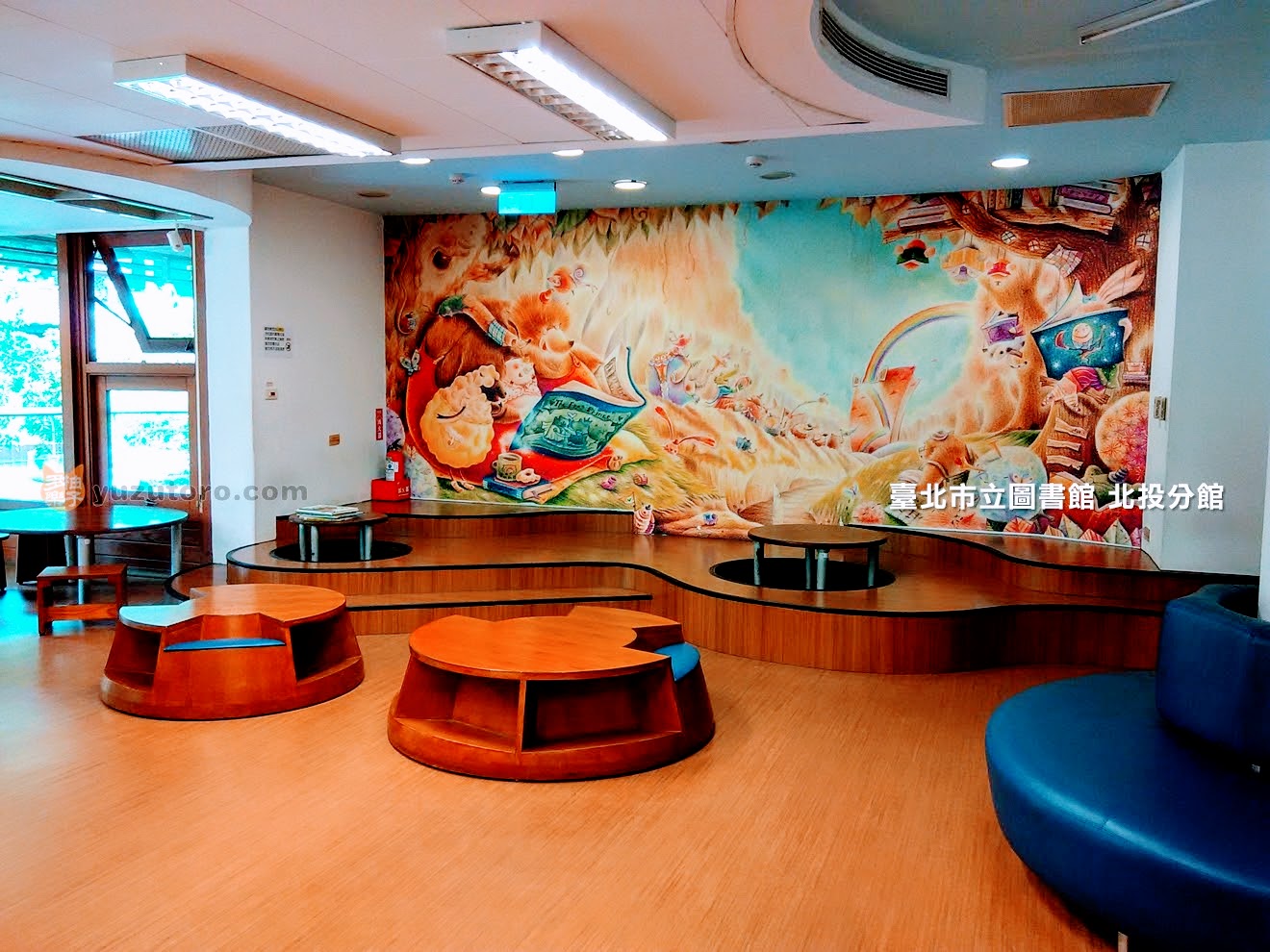 畫有可愛動物彩繪牆面的說故事區感覺上就很適合大哥哥大姊姊們帶領小朋友在這邊聽童話故事。