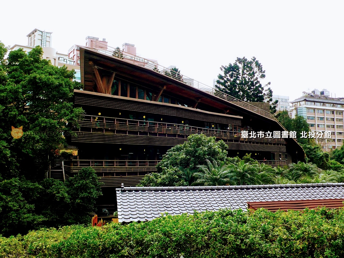 逛完這間不簡單的圖書館,從不同的角度再看一次,北投圖書館看起來就像是林間樹屋般!(只是這是一座很大的樹屋~上下三個樓層的總面積有 650坪)