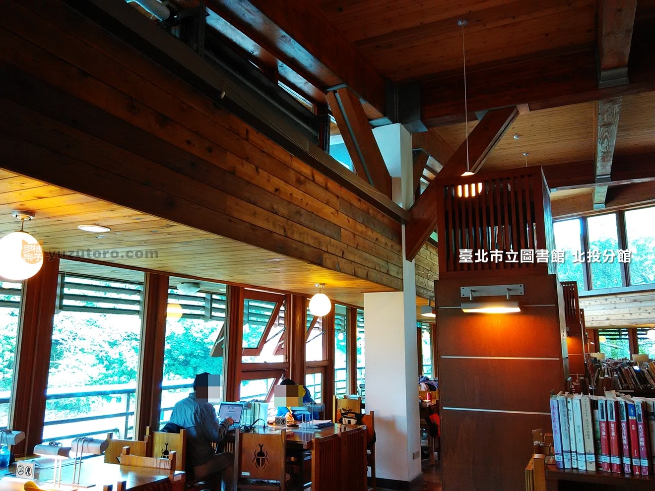 「臺北市立圖書館北投分館」就像艘方舟座落在北投公園,即便造型特殊,但主要由木頭製造,跟四周的盎然綠意與古蹟北投溫泉博物館完全不違和。