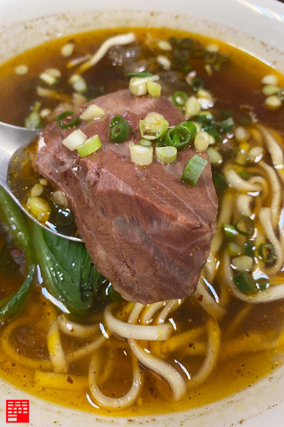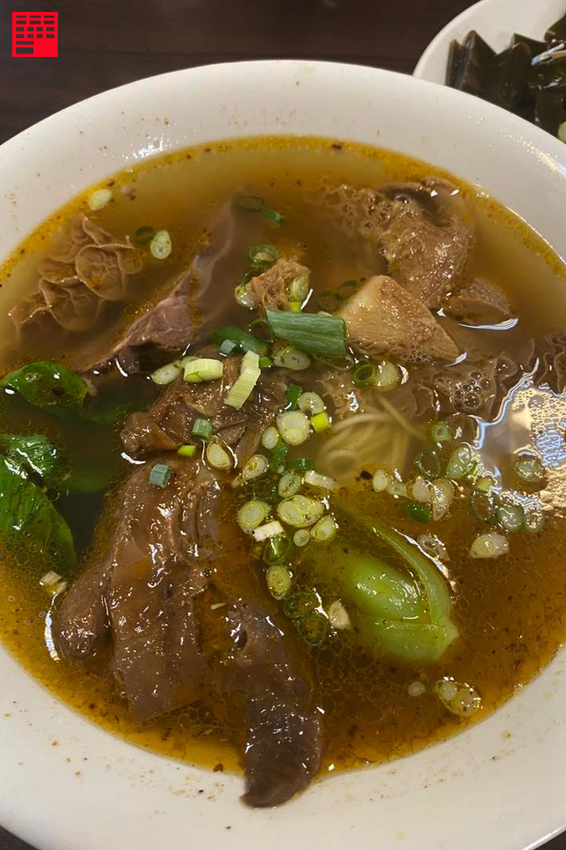 店裡的湯頭分為紅燒、清燉、麻辣三種,我跟食女兩人都偏好紅燒,他們的紅燒湯頭非常香,也不會偏辣(有些牛肉麵店的紅燒湯頭就很辣,但他們不會),單喝跟搭配蔥花喝會有兩種不同的風味。