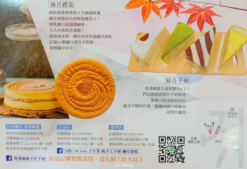 今天要分享在台中很知名的千層蛋糕『倪菓幽靈手作千層蛋糕』,沒想到這次到后里的總店有意外的發現『有獨家優惠跟限定商品』!馬上就跟大家分享一下總店的好康資訊吧!