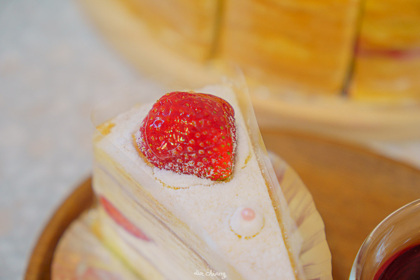 ▲草莓千層上面都會擺上半顆的草莓,夾層也會有新鮮的草莓,這款作為伴手禮一定超體面的!