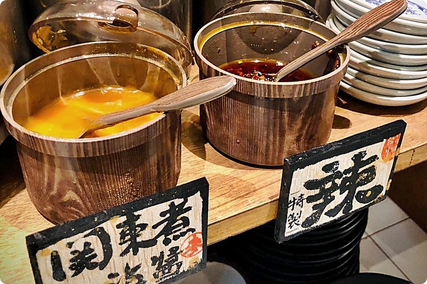 小小麥的關東煮每種食材都是銅板價~食材根據當天採買為主,這樣滿滿一大碗真的是超級澎湃,沾上一點店家特調的醬料~帶一點點辣、一點點甜非常開胃!別忘了最後還要多喝幾口湯唷!店家自己熬煮的湯頭真的好好喝~一樣可以免費續湯的唷!