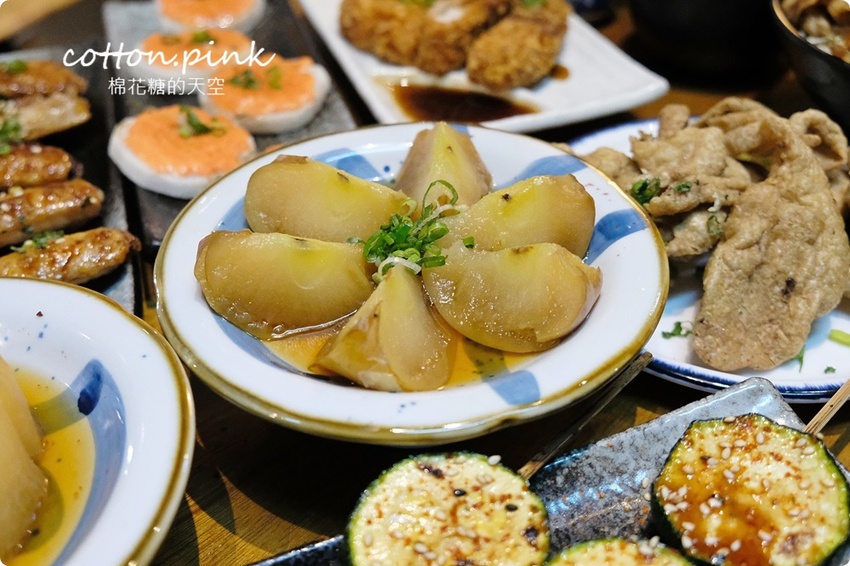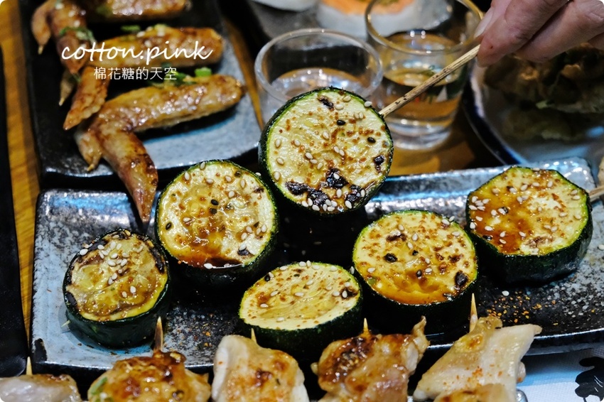 烤櫛瓜串一定要點的啦!因為小小麥的櫛瓜超厚、超甜~不計成本的提供給大家,尤其居酒屋的吃食通常以肉類為主,來上一盤烤櫛瓜剛好可以清清味蕾,這個我一個人可以嗑掉兩隻~