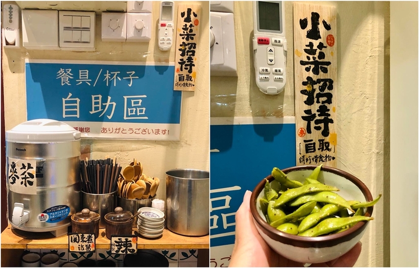 慶祝重新恢復營業,現在來小小麥消費就免費招待小菜!目前是毛豆可以自取任吃,顆顆飽滿、鹹香夠味的毛豆完全就是開胃首選!點完菜之後就可以先來一碗~