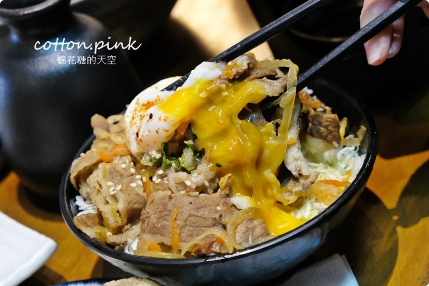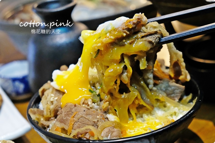 阿季推薦一定要加上一顆溫泉蛋!看看這蛋黃爆漿的畫面是不是超級誘人的?!而且蛋黃拌進牛丼飯裡讓口感吃起來更滑順~味道更濃郁了,超級加分的啦~必點必點!