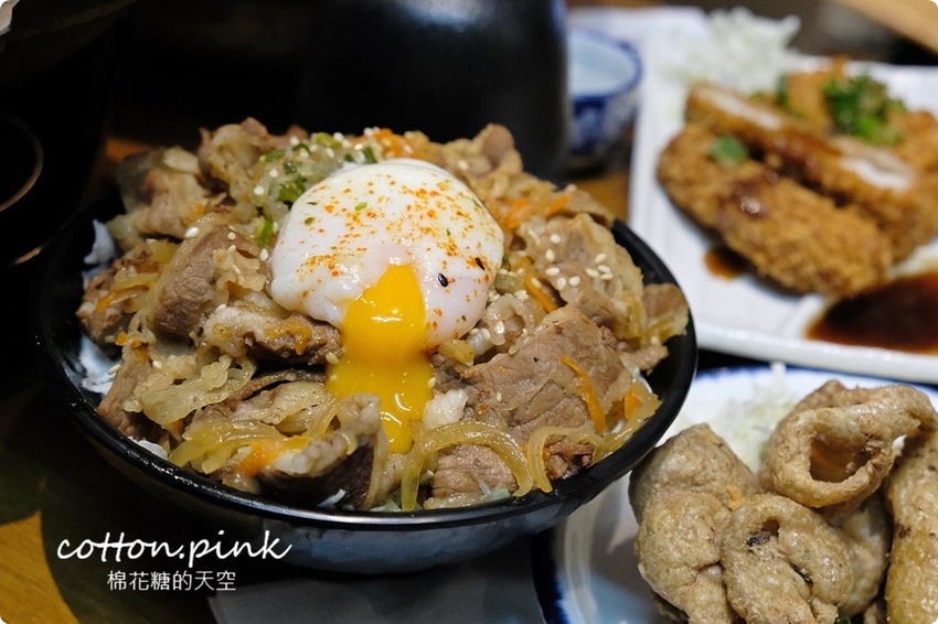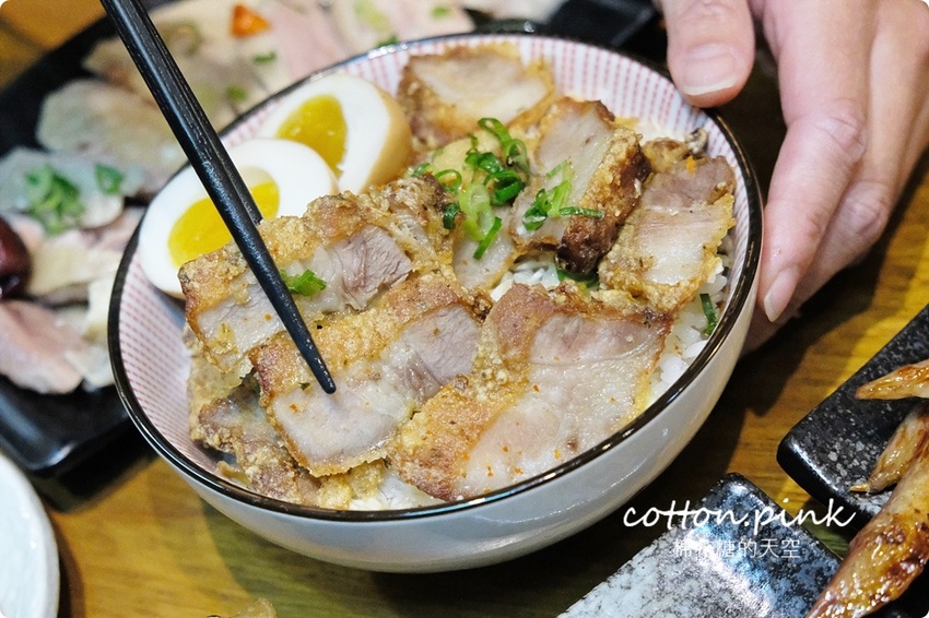 另外一碗秘製炸燒肉丼飯~阿季加上一顆糖心蛋,一上桌炸燒肉的獨特香氣就一直在跟我招手,用多種香料一起醃製的燒肉香氣很多層次,炸過之後再切成片狀~熱熱吃外酥內嫩超下飯!這味道也是外面吃不到的唷~