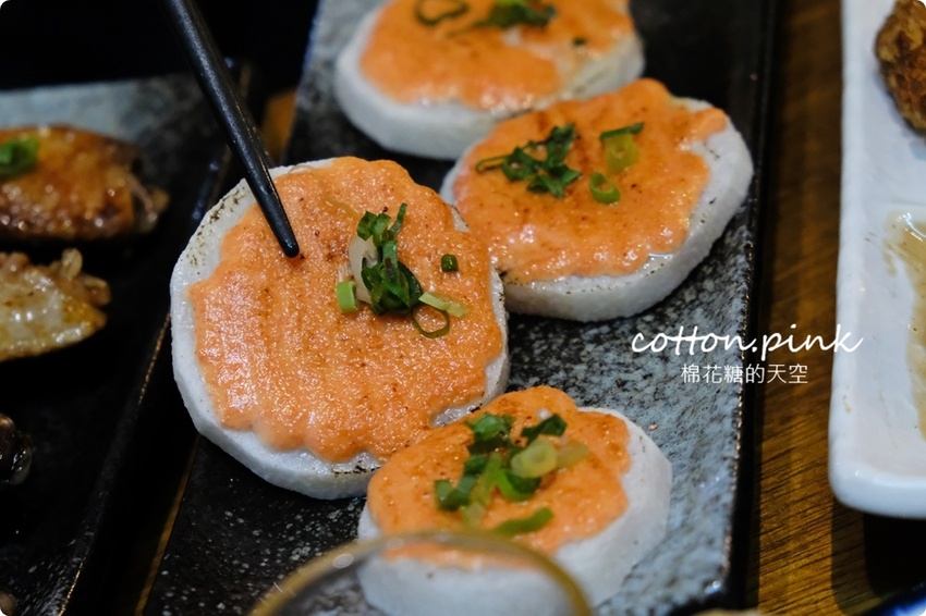 明太子山藥燒可不只外觀誘人,吃起來整個讓阿季我眼睛為之一亮!老闆在日本山藥上擠了厚厚一層明太子醬,上桌前還要再多做一道炙燒的手續,這讓醬料多了迷人的炙燒香氣~超~好~吃!尤其山藥本身帶一點黏黏的口感加上濃濃明太子醬~整個風味就是會在口腔裡迴盪好久,讓人回味無窮阿!