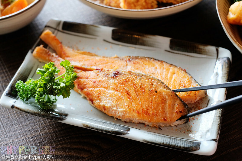 鮭魚排斷面色澤也是煎得很剛好,整體魚刺不多也偏大,可以安心享用