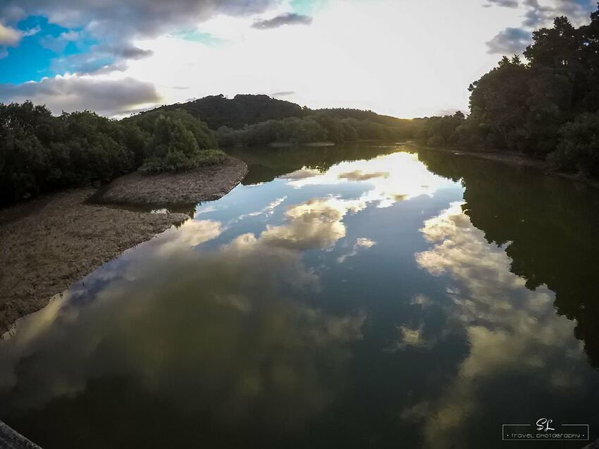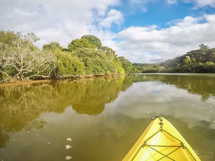 從 Coastal Kayakers 的附近延著出海口往 Waitangi River 裡面划去,最後會到 Haruru Falls 附近的港口把船停下來休息一下。說真的這時候感覺到自己怎麼這麼有能耐可以把獨木舟划到目的地。
