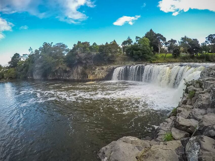 Haruru Falls 的下方就是划獨木舟會經過的地方,不管是坐在獨木舟上或站在瀑布旁,只能說這瀑布真的壯觀。