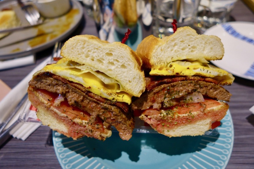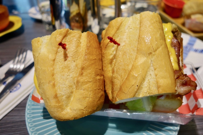 大推三明治選軟法麵包,表皮香酥內層有彈性與嚼勁~好好吃!