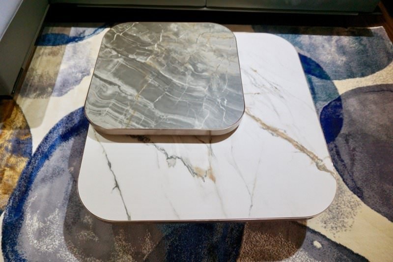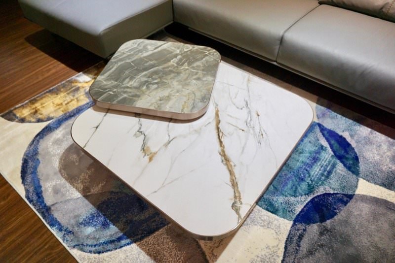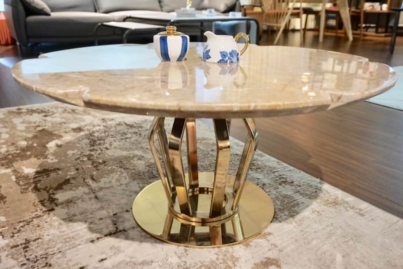 ▼義大利進口頂級岩版與不鏽鋼度咖啡金的茶几,感覺是豪宅裡的氣派配件