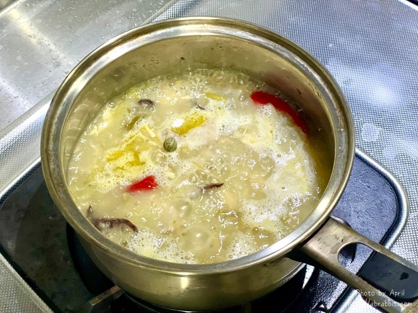 湯品的部分記得都要煮熟煮滾再喝,我習慣放到鍋子裡面煮一下。這款上湯花膠雞的湯頭屬於比較濃稠一些的,湯頭溫潤又好喝!這種平時無法吃得到、只能在高級粵菜餐廳享用得到的花膠雞湯,竟然在家就能吃到,我真的太感動了啦!