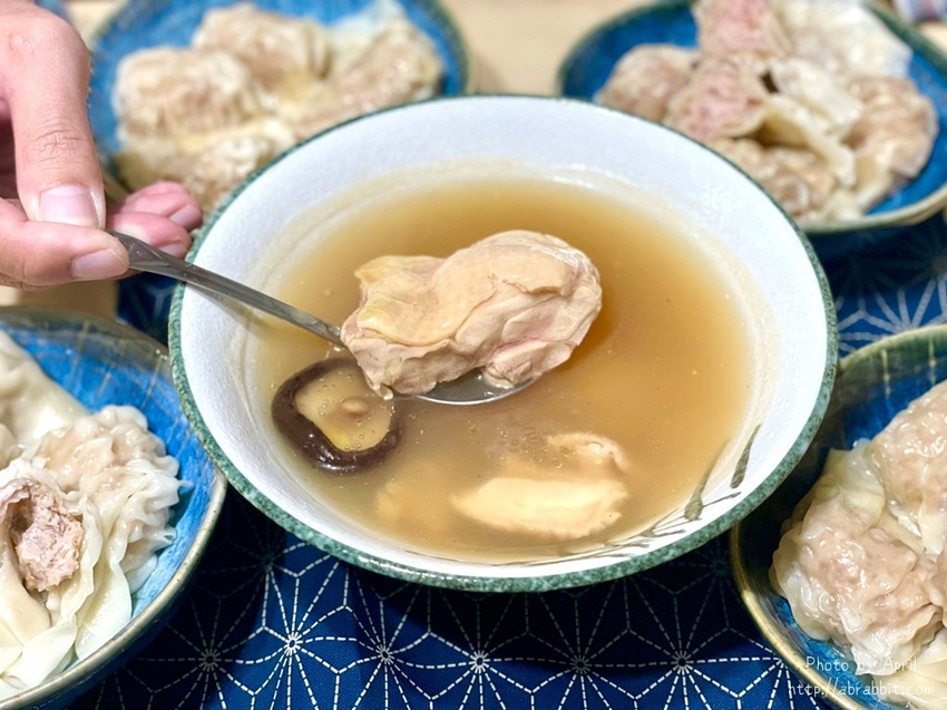蝦子還不是小小一尾喔,整隻蝦子就跟它餛飩一樣大,所以當我把餛飩剖半的時候,蝦子也被我剖半了(笑),鮮蝦餛飩是使用台灣無毒白蝦,再搭配獨門油蔥酥與新鮮豬肉餡料做成的,每一口都吃得到肉的鮮甜和蝦子的彈牙!
