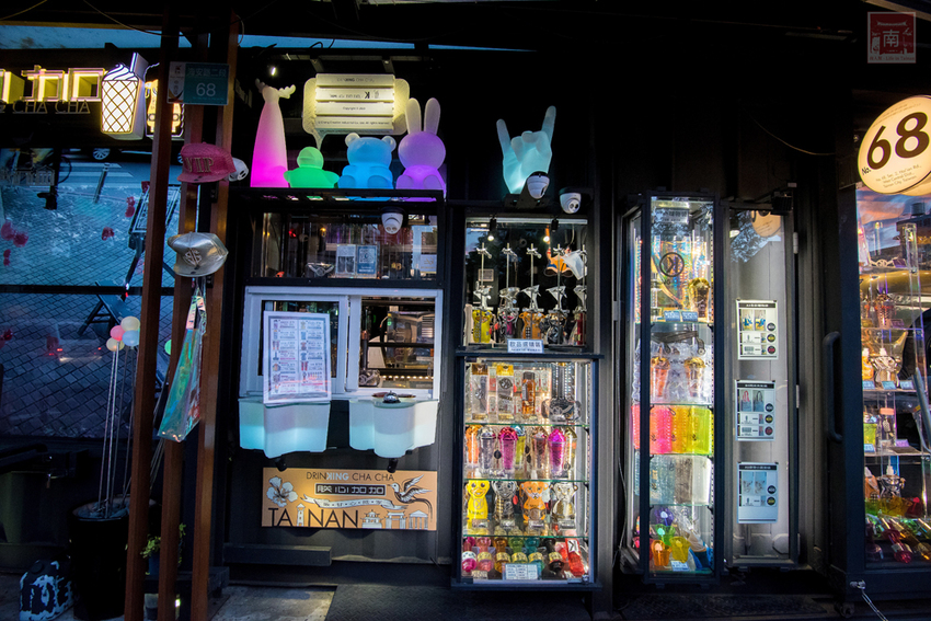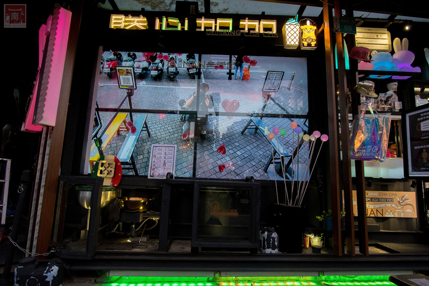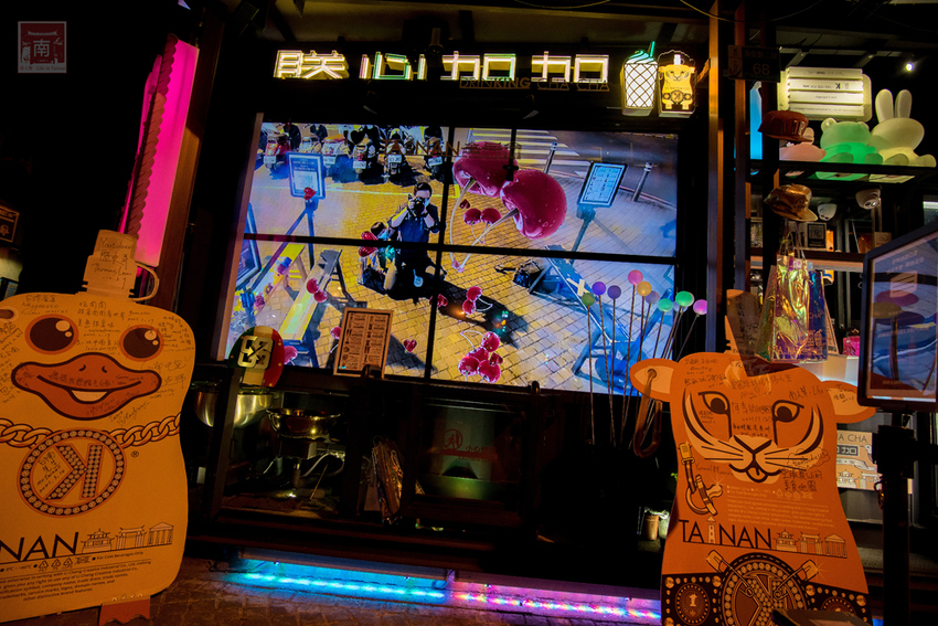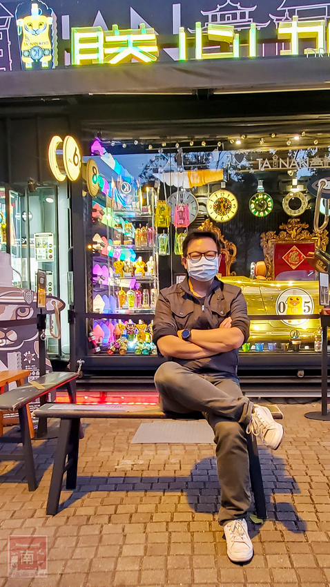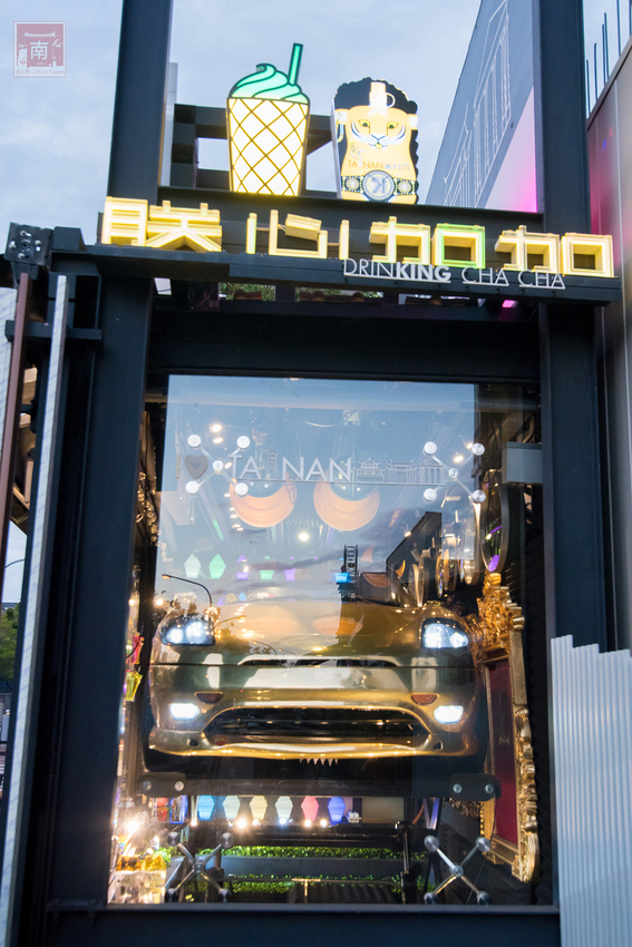 這裡真的很適合拍照的地方,因為白天和晚上的氛圍完全不同,個人是比較喜歡晚上的氣氛,因為打上不同顏色的燈光,金色車子也會上下移動,而且很豪華亮麗,所以路過的人總會多看幾眼,有時候跟朋友約去正興街的人,也會特別約在這裡,看來『朕心加加』也算是海安路的一個新地標。