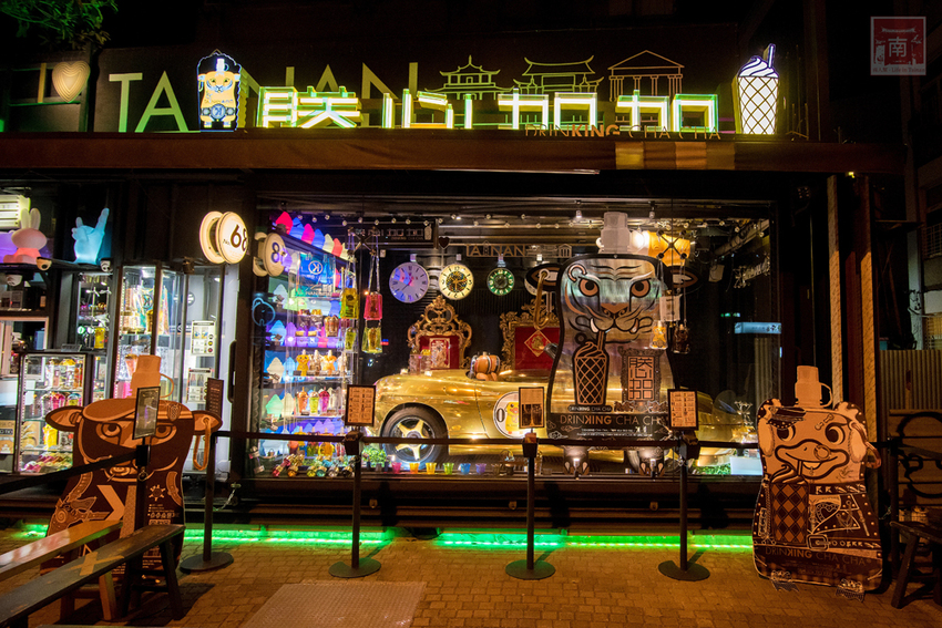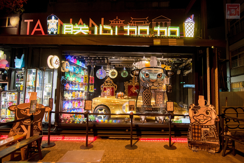 假日晚上海安路都出現滿滿的人潮,因為有藝術街道和很多覓食的地方,和親友聚餐之後,很多人都會四處逛逛,尤其是有活動的時候,人潮完全是爆滿的情況,真的是非常熱鬧。而小編每次來海安路都會被路旁閃亮亮、來自南歐的金色車子吸引,當時覺得這家可能只是網美店,杯子漂亮而已吧!但想不到飲料也滿合小編和樂多的口味。