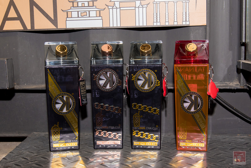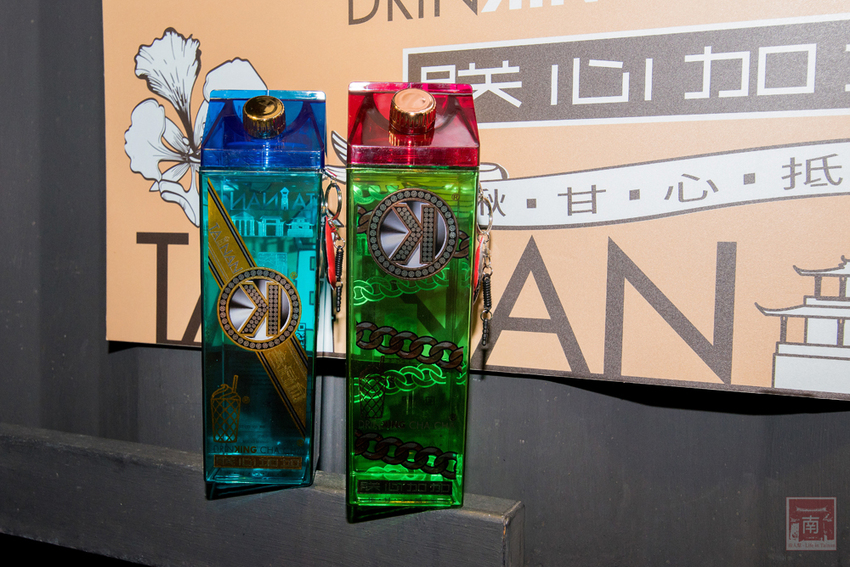 牛奶瓶是朕心加加開店以來的主打商品,外觀看起來像是930ml那種鮮奶利樂皇。因為很多朋友都被瓶子吸引,瓶子感覺很像是哪一個國際品牌的設計品,帶點華麗又有點仿貼鑽風格,最上面小口是直接喝的開口,從中間打開則是大開頭,讓你方便拿取茶包,每一個旁邊也附了手機吊飾,可當手機螢幕擦,也可以當成耳機孔塞。喝完飲料還可以把它當成水壺重複使用,瓶子也同樣經過食藥署(FDA)食品級容器檢測合格。