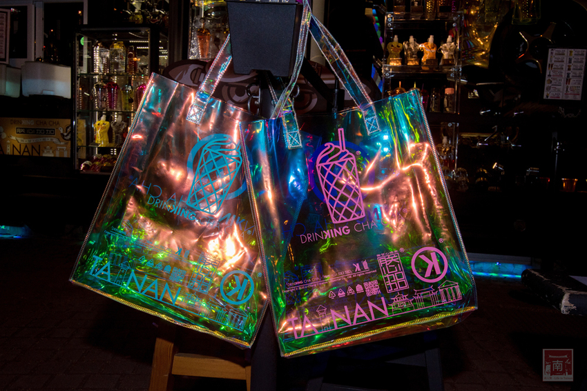 上次的全彩購物袋,小編都拿來當去殺玩的手提袋,透過不同角度和燈光照射下,會產生不一樣的光澤和顏色,很適合喜歡多變化的朋友,而且背上一袋很容易吸引人目光,而且不是全透明的設計,所以不會讓人一眼就看出裏頭裝了什麼。拿來當外出的背包或是游泳的時候使用,因為防水又不是設計感。