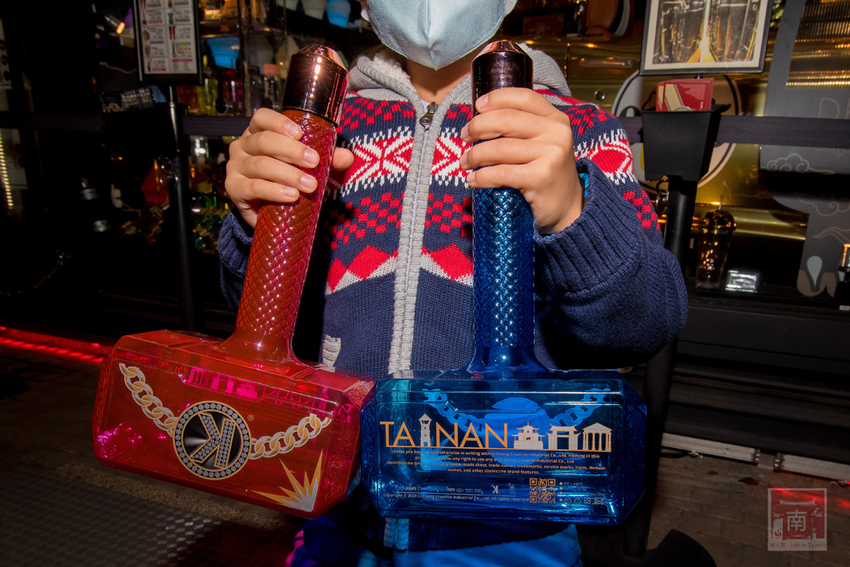 朕心加加 是飲料店也是文創品,台南獨家在地味飲料瓶,繽紛聖誕瓶很應景,雷神鐵鎚再加碼粉紅和藍色。