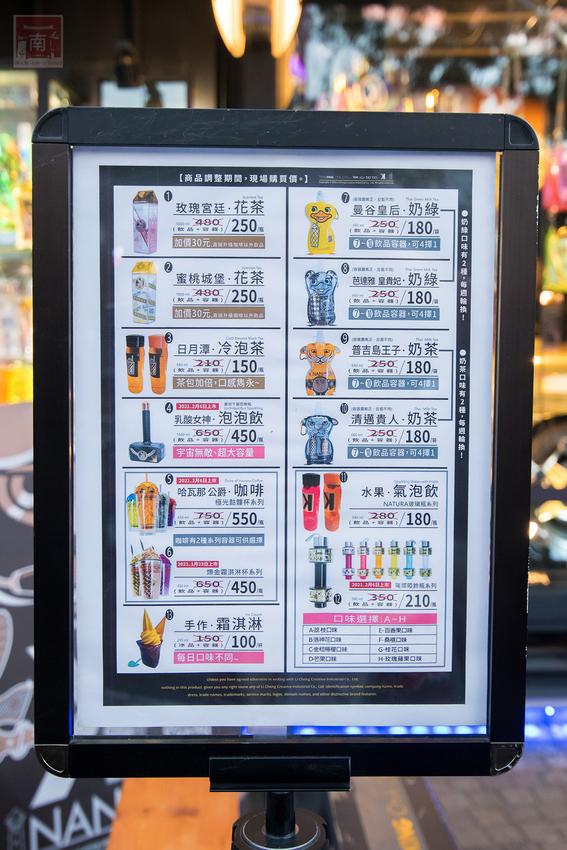 單看價錢當下會感覺價錢不便宜,後來才發現原來瓶子是可以帶回家的,飲料主要有純茶類、奶茶類、氣泡飲和霜淇淋。