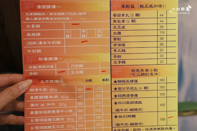 消費方式每人300元起,鍋物皆含綜合菜盤、主餐、白飯、飲料、冰淇淋無限供應