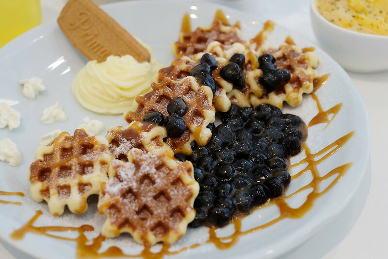 焦糖波波卡士達鬆餅總共有八塊比利時鬆餅,搭配為數不少的焦糖珍珠,光是先視吃就覺得很誘人呀