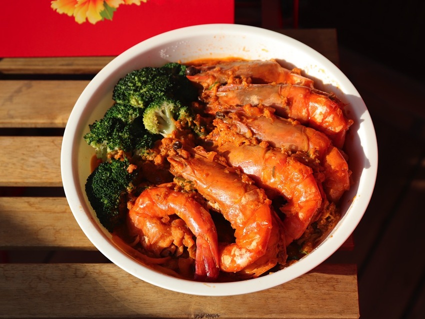 記得! 上桌前,先把下方的 超大隻虎蝦 夾起來~