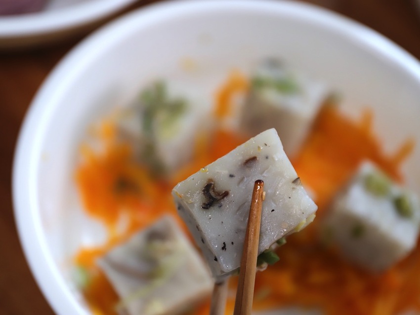然後他們家的米糕 還有特別炒薑,應該是 麻油先炒薑絲後,再用來製作米糕,所以整體麻油&老薑 的 香氣&風味 都超迷人的香濃啊!!!