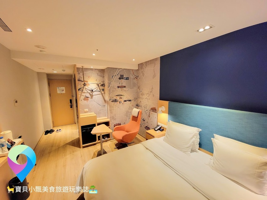 寬敞舒適乾淨的住房空間,一旁還有台中景點地圖的壁紙牆