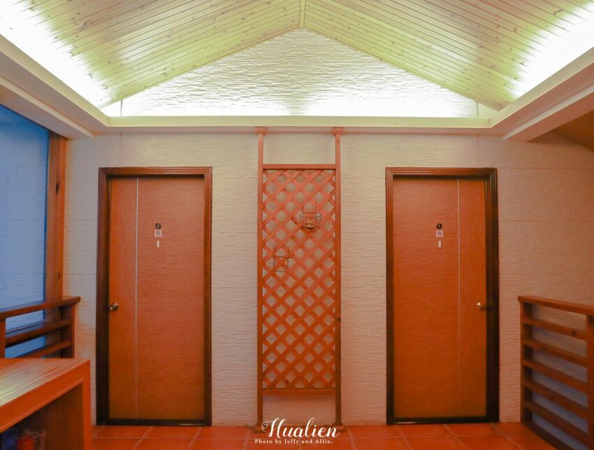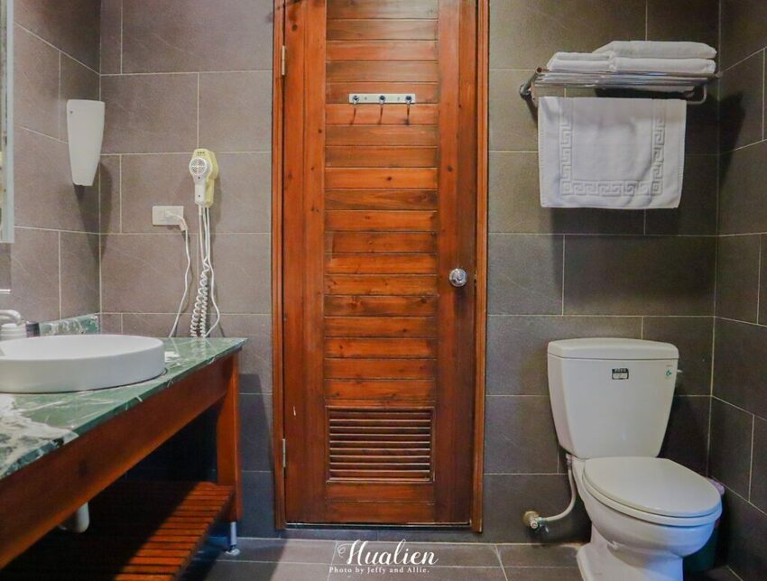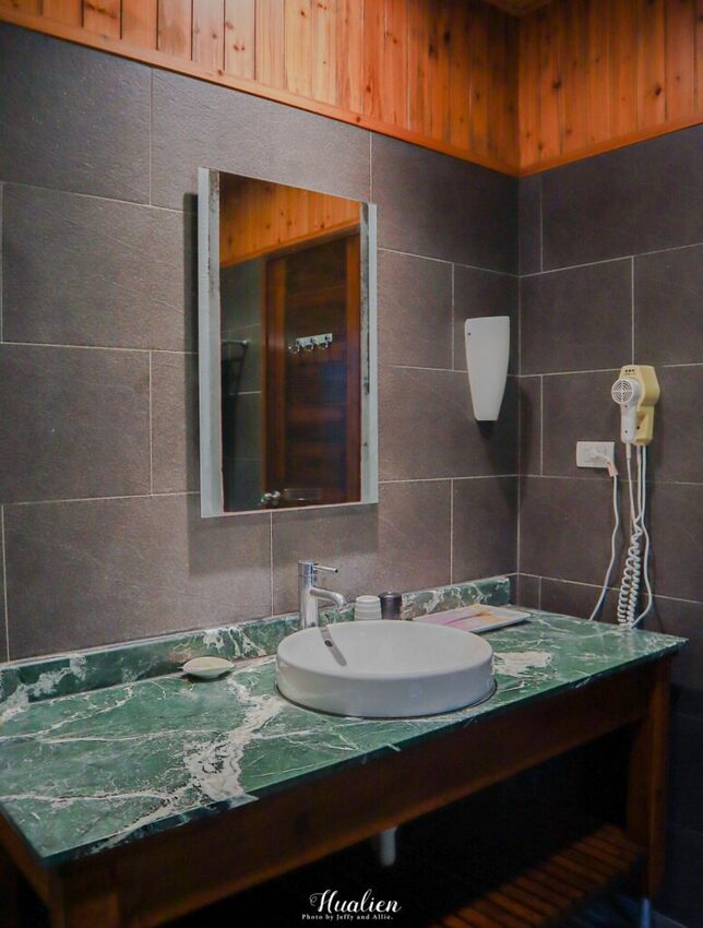 浴室與廁所主要以高雅的石磚鋪成,搭配木門與木質屋頂,瞬間有種在小木屋內洗澡的感覺。乾溼分離的設計與浴室良好的通風,淋浴後不會太潮溼。而除了浴室裡頭的固定式吹風機外,房內衣櫥還有另一支吹風機,兩個人一起入住不用擔心搶吹風機的問題啦~