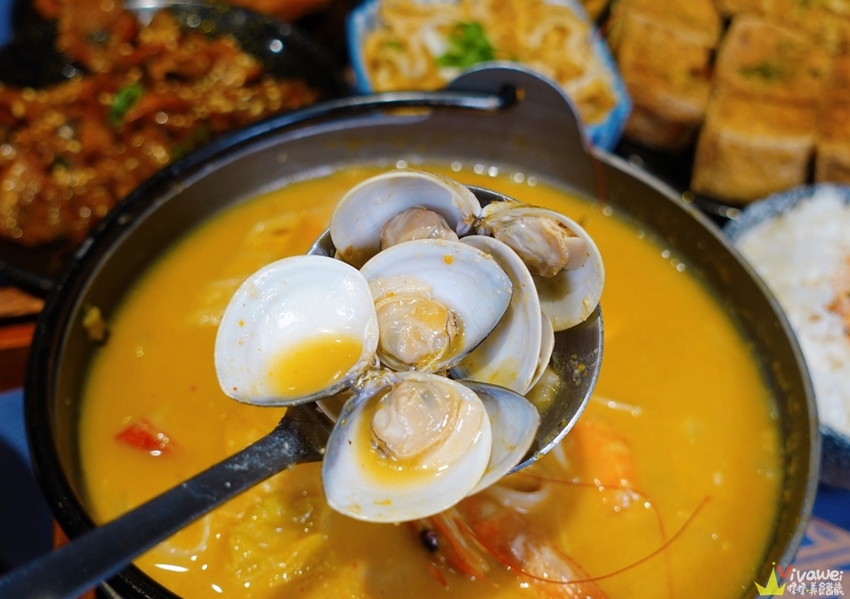 ▲鍋物的用料很實在,裡面的內容物有高麗菜、金針菇、蛤蜊、板豆腐、蟳味棒、豬血糕、小貢丸、虱目魚丸、魚餃、起司魚豆腐等~