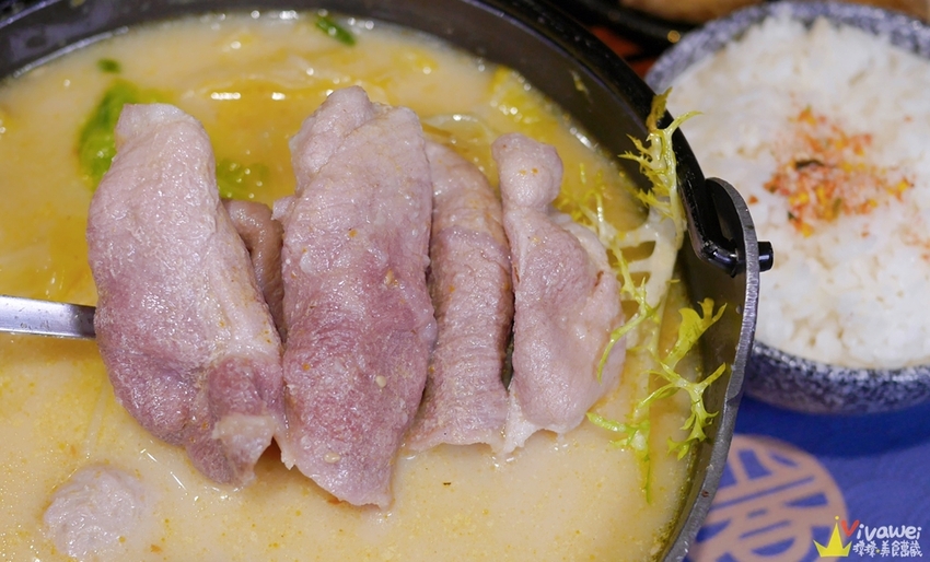 ▲蒜味豚骨鍋搭配了豬肉片~豬肉選用肥瘦適中的梅花豬~吃起來不會乾柴!而且他們的肉片量比一般小火鍋店來得多~如果要額外單點肉片的話~只要加40元就可以再多6片豬肉片唷✌