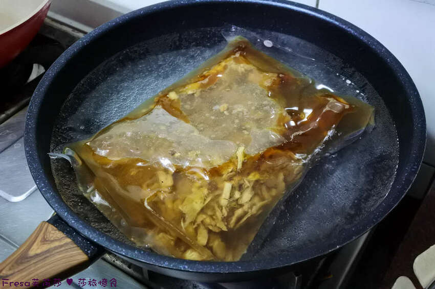 整包裡面有薑片,讓鴨米血加熱的時候更入味.