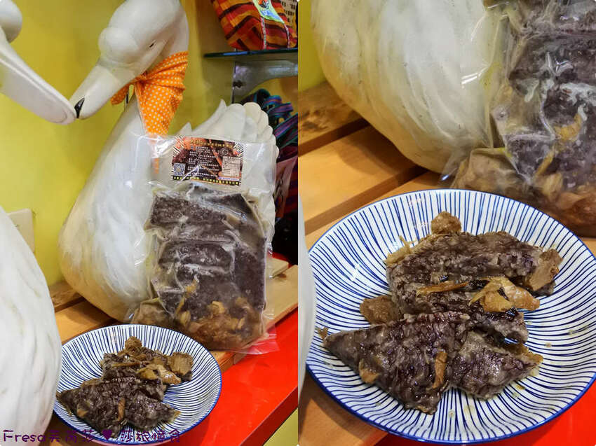 使用新鮮鴨血、台灣長糯米、鴨油、鹽等調味製成.