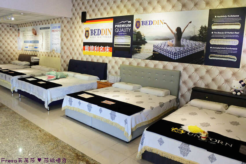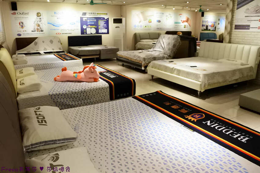 展場空間數十種床墊任您試躺,價格幾千到幾萬都有.