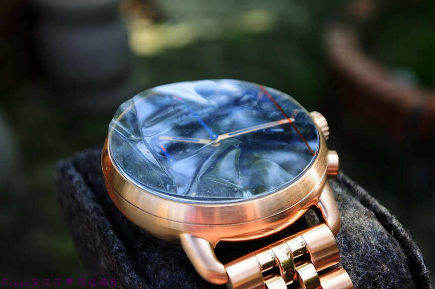 陽光下,照色出錶盤顏色,有點雙色漸層美學.