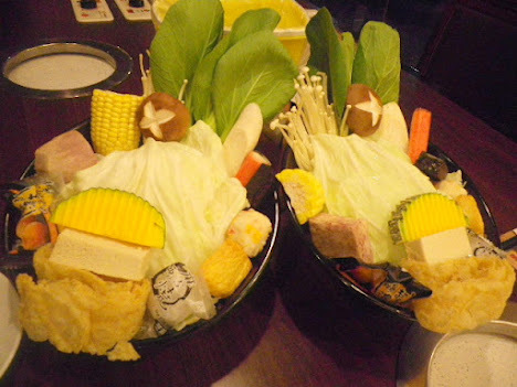 很快就擺滿了雙人火鍋餐的食材,綜合菜盤超大器的,看了就知道業者的心意,